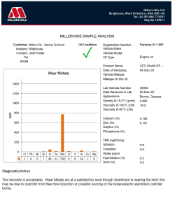 Our team of experts are then able to advise on changing the part if results show it is needed, before a larger problem presents itself. All sample reports are stored in Millers Oils archive for a minimum of 12 months. From this, you can conduct multiple testing to monitor the condition of your engine etc. over a period and compare the information.
